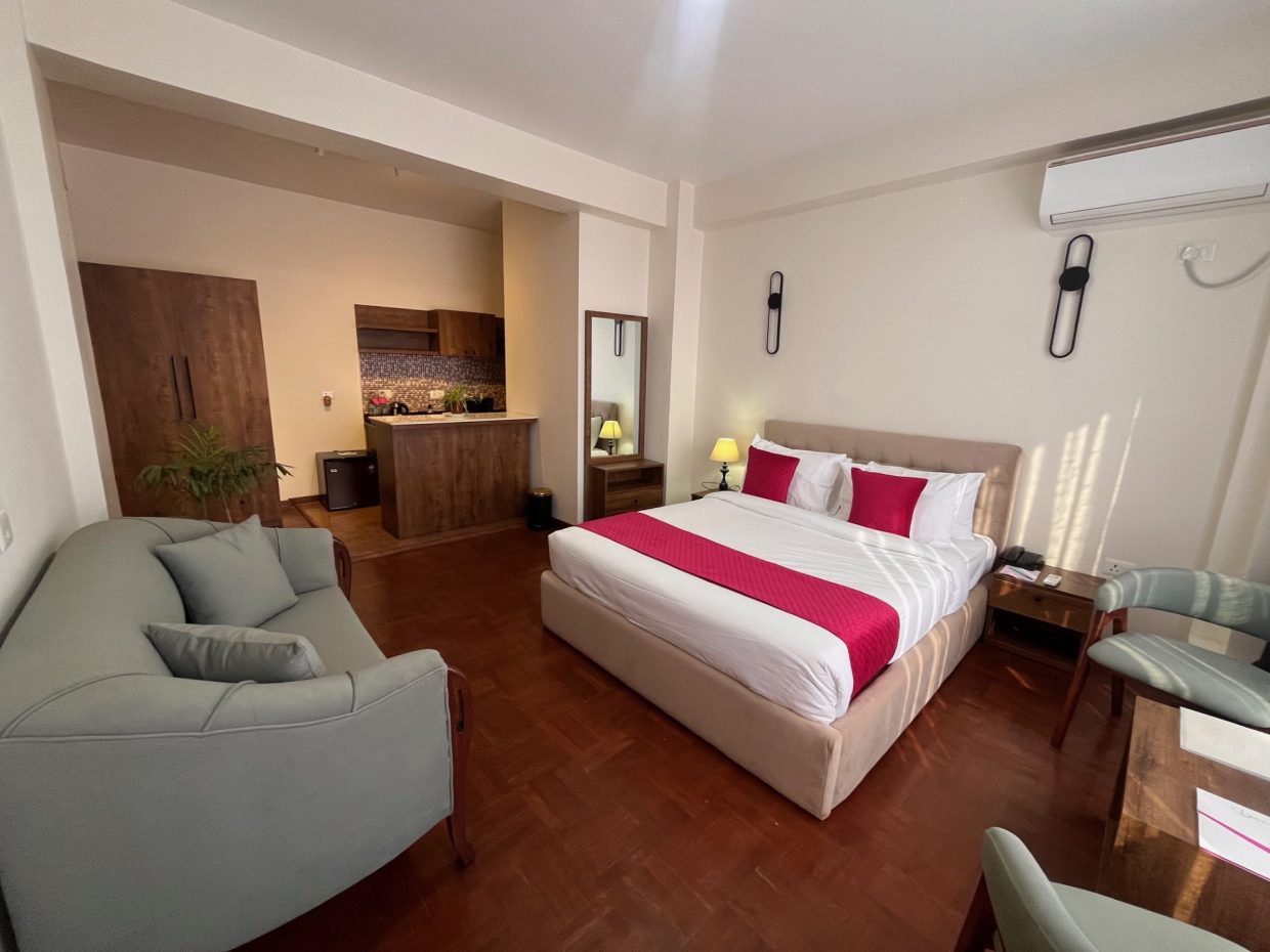 Step into the world of refined elegance and indulgent comfort with our newly launched Mhendo Suites . Designed for discerning guests seeking space, serenity, and sophistication, Mhendo Suites redefine premium living with: 🛋️ Spacious Interiors with designer lounge seating 🛏️ King-size bedding with plush linens 🍽️ Private kitchenette for modern, home-style living 🌇 Sun-drenched views of Kathmandu hills 🛁 Premium bath essentials for spa-like relaxation 🏊♀️ Complimentary access to Infinity Pool, Boutique Gym & Wellness Spa 🚘 Free EV airport pick-up and drop-off 🍳 Daily breakfast & welcome drinks included